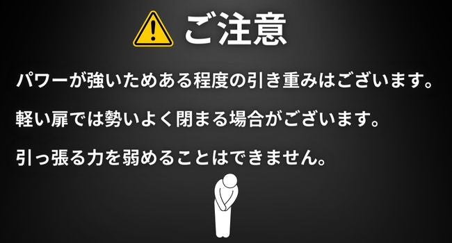 強いパワーが故に、扉を開ける際に引き重みを感じる場合がございます。