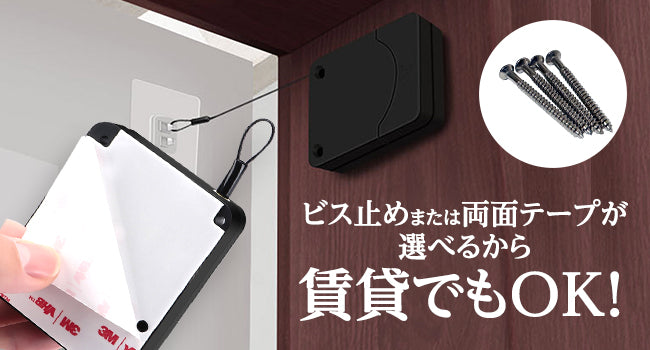 両面テープかビス止めをお選びいただけますので、届いてすぐにご利用いただくことが可能です。