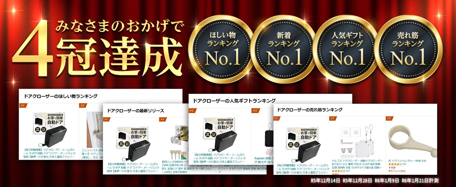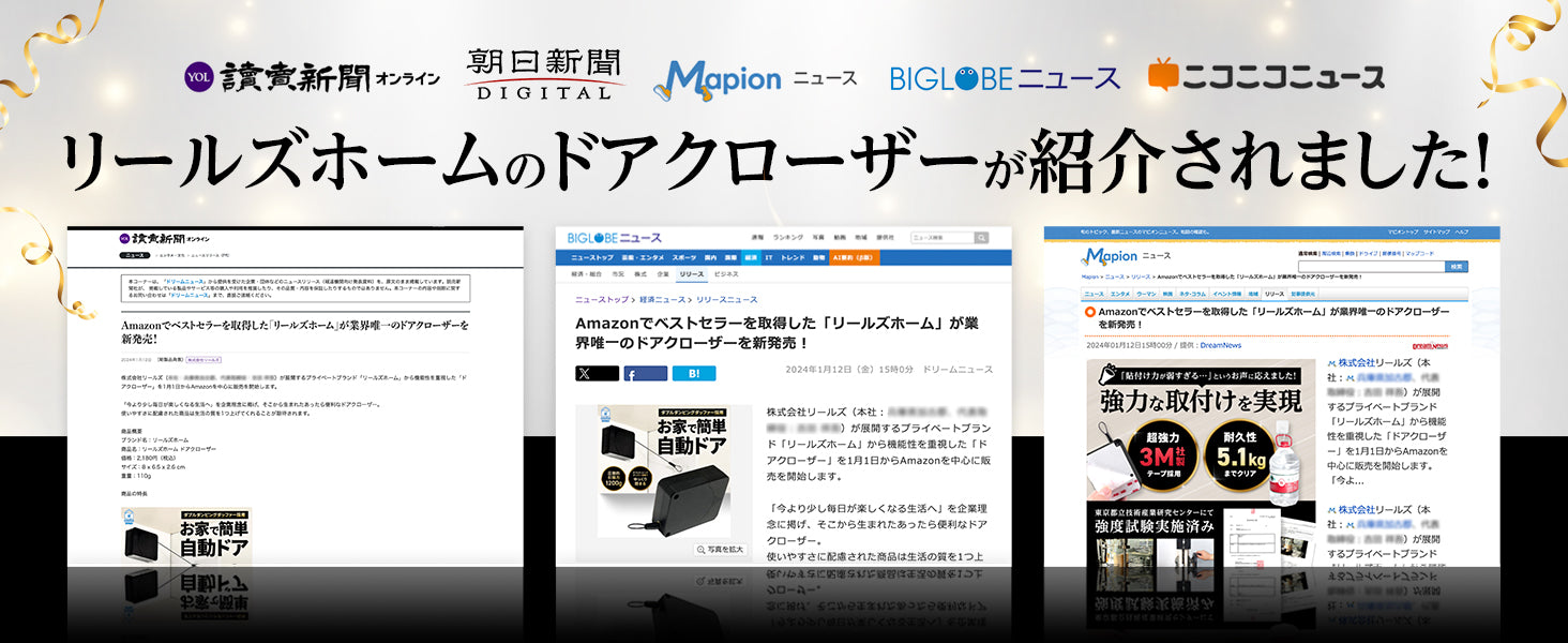 リールズホームのドアクローザーは業界最大の1200gの引張力を実現しました。